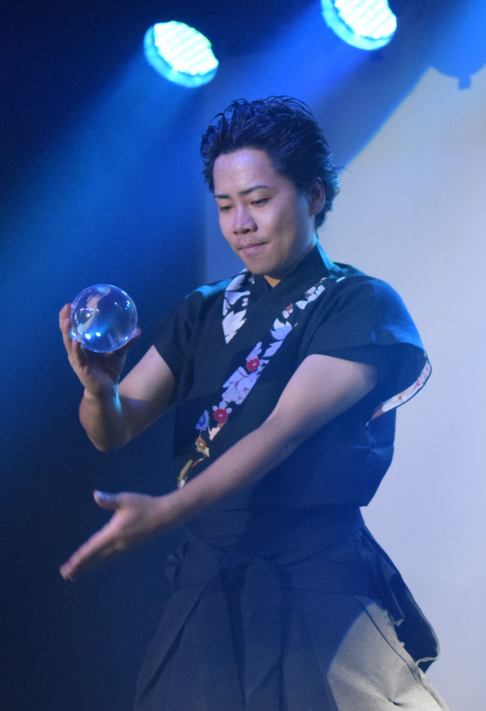 様々なジャグリングを行います。よくあるボールジャグリングから珍しい糸なしけん玉から両手で行うけん玉のパフォーマンス さらにボールを指先で回すフリースタイルバスケのスゴ技まで!